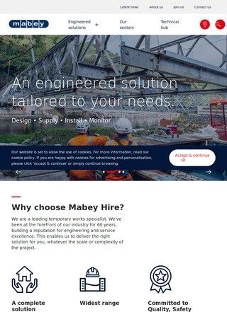Mabey Hire have been at the forefront of the temporary works industry for over 60 years, building a reputation for engineering and service excellence. The Mabey Hire range of services includes temporary bridge solutions, excavation shoring equipment, propping and jacking, groundworks equipment, and formwork and falsework systems.