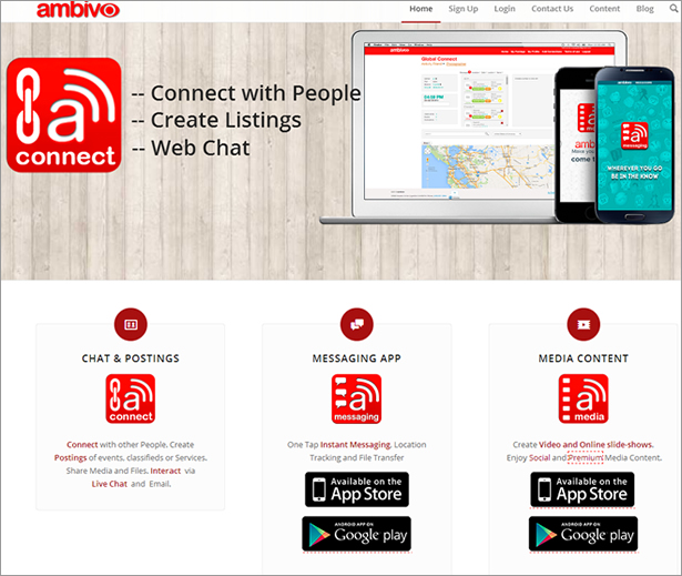 Ambivo streamlines social interactions between People and Business by providing a single portal where we can specify our preferred channel of interaction be it "Active Communication" like - Live Chat, Email, SMS, Video-Call or the "subtle forms of communication" like sharing a multi-media slideshow, creating a Posting or notice for events (birthdays, anniversaries, classified etc.).