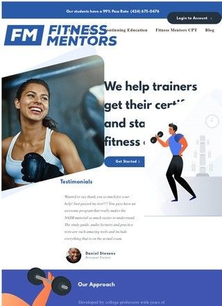 Fitness Mentors provides education to assist students in becoming Certified Personal Trainers. We offer our Fitness Mentors CPT Certification which is nationally recognized as well as approved continuing education for fitness professionals.