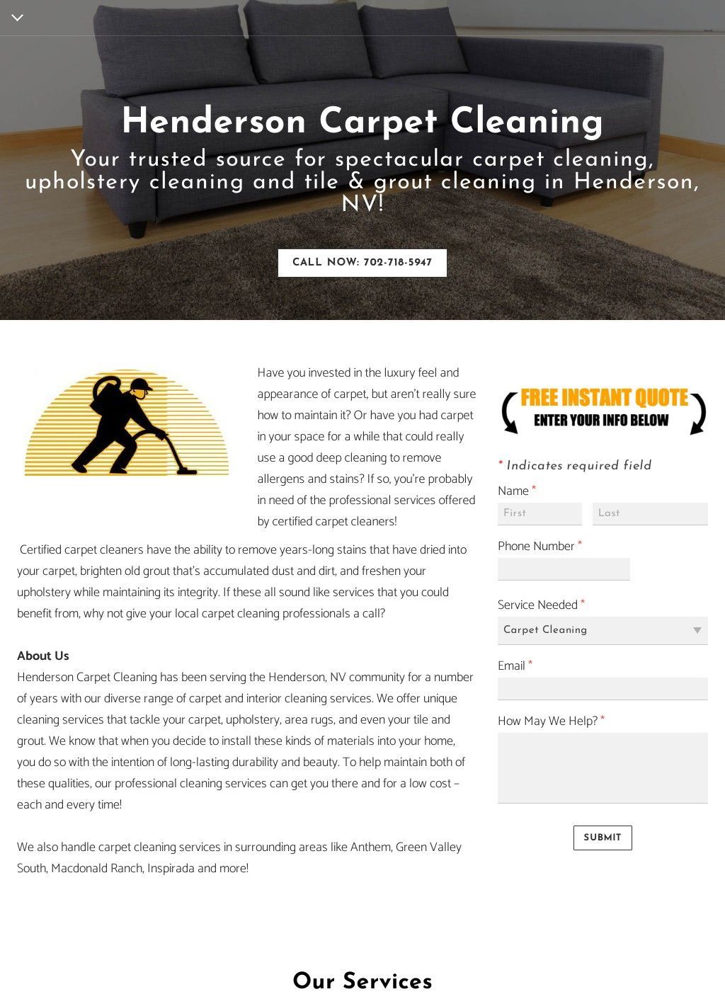 Here at Henderson Carpet Pros, we love making the carpets of our customers clean and fresh, keeping airborne contaminants that get trapped in carpet at a minimum. We strive to be the best in the business and our team is extremely friendly and experienced. Call us today if you're in Henderson, NV and need a thorough carpet cleaning, til and grout cleaning, water restoration, upholstery cleaning, area rug cleaning or commercial carpet cleaning. We have a satisfaction guarantee!