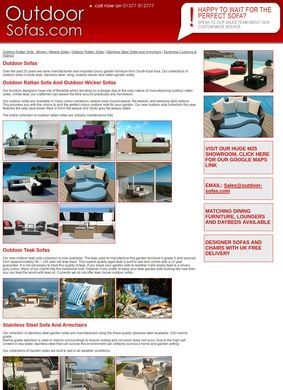 Outdoor Sofas added on 17-Sep-2012, updated on 26-Aug-2016 | Edit Listing Offers a wide range of outdoor rattan sofas, teak sofas and stainless steel garden sofas. URL https://www.outdoor-sofas.com/