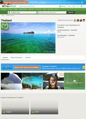 Trip Advisor Thailand compiles tourism information for the country. From vacation rentals to local excursions there is a wealth of information. A unique feature for this website is the fact that you are able to read first-hand reviews from actual travelers. Unlike some websites who only provide company based feedback, you get real feedback from real people.