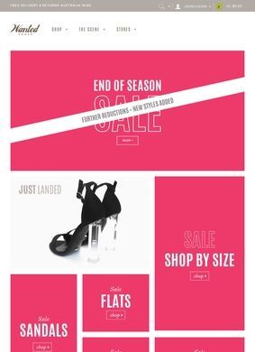 Straightforward online seller of discounted footwear for women. Preordering is accepted and there are several categories which can be browsed, like boots, platforms, bridal, flats, social, brands and heels. The “Just In” category features the newest additions to the store.
