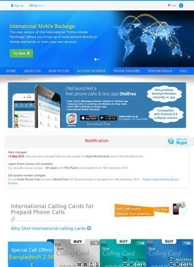 An online shopping site for purchasing prepaid calling plans in the form of virtual phone cards which can later be used to make long distance phone calls. You can make calls from our own free phone dialers that are available for various smartphones and desktop platforms. There is absolutely no hidden charge. You get what you paid for and of course a better voice quality is assured. Additionally, Otel International's new service "international mobile recharge" allows you to top up the balance on your account with ease.