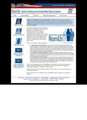NameUs is a national resource and information facility that has a database with thousands of profiles and pictures of missing persons and unidentified or unclaimed descendants. NameUs is a free online resource that is made available to all including police, family, coroners, and medical examiners.
