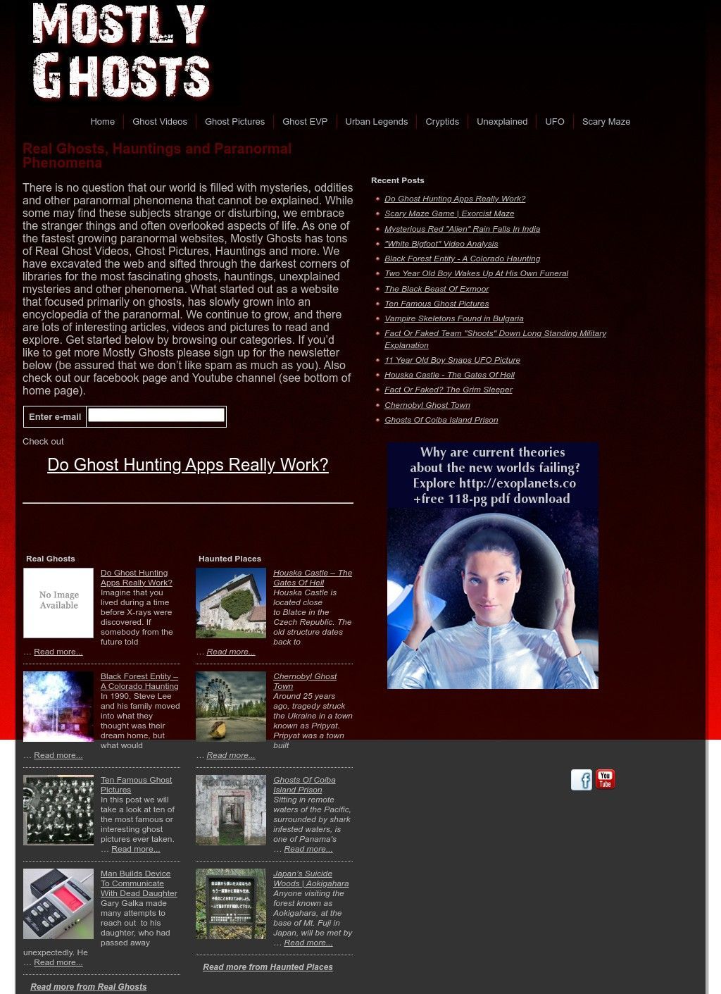 Website focused on real ghost, hauntings and other paranormal phenomena. Site includes information on haunted locations and personal experiences. They also provide ghost pictures, movies and electronic voice phenomena for user viewing. Site also includes UFO's and other unexplained phenomena information.